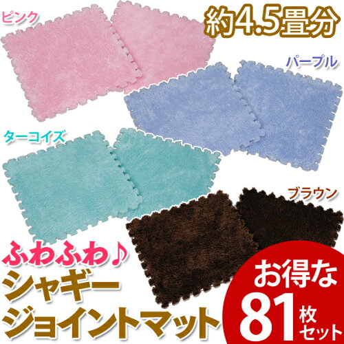 送料無料 81枚セット:約4.5畳分シャギージョイントマットJJM−319 ピンク・パープル・ターコイズ・ブラウン[アイリスオーヤマ/子供部屋/ベビー用品/赤ちゃん/騒音/防音/インテリア/フローリング・床の保護/シンプル/カーペット/ラグマット] 送料無料